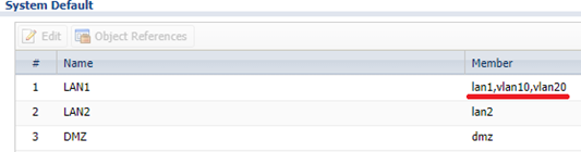 Go to Configuration > Object > Zone > System Default looks if two or more VLANs are in the same zone like this.