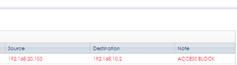 When you now try to ping a device from VLAN10 to VLAN20 the Policy Control has rejected it. When you go to Monitor > Log, you can see here that the access got blocked.