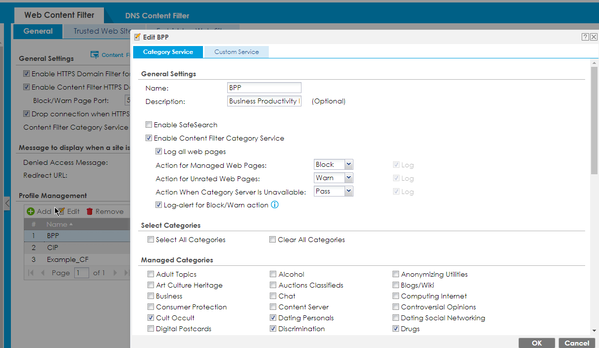 3) Configure Web Content Filter
