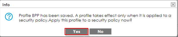The profile has been saved. A profile takes effect only when it is applied to a security policy.