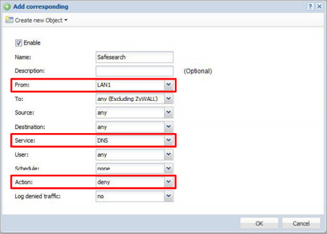 In this example, we'll show how Google SafeSearch can be used at the network level. SafeSearch is activated here for all clients in LAN1.