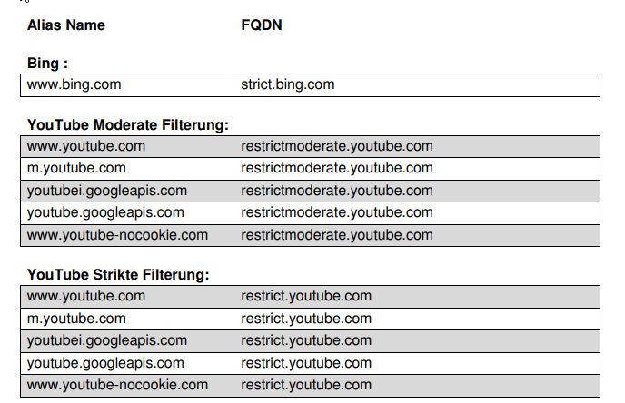 CNAME also limits Bing and YouTube. At these services the CNAME entry is enough: