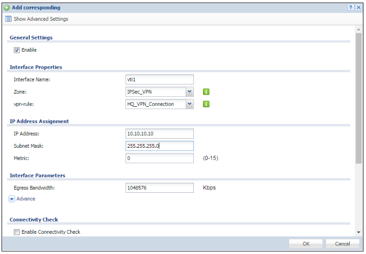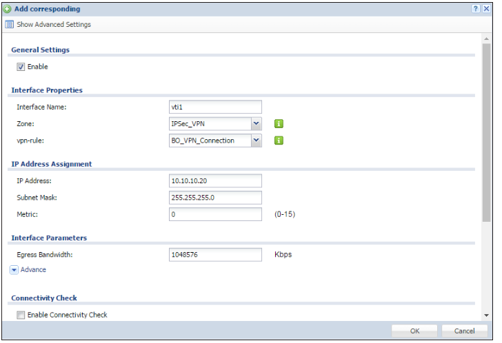 Configure a VTI interface that corresponds with the VPN rule.