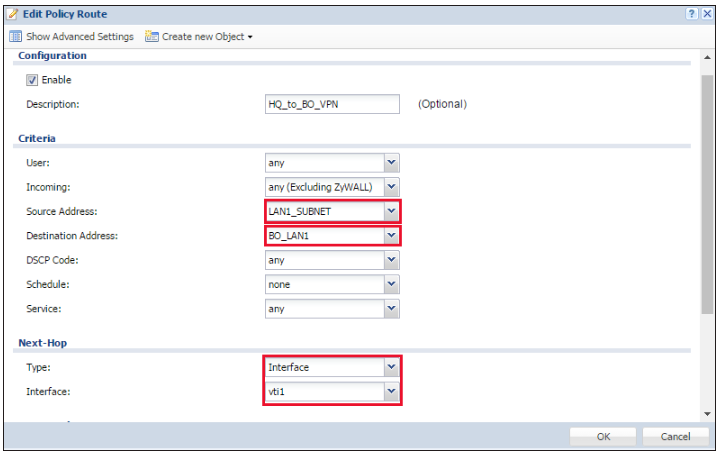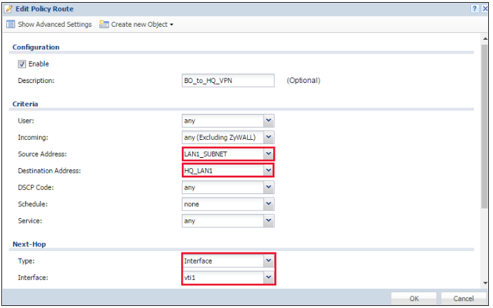 4) Configure the Policy Route on BO-USG40