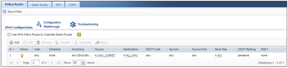 CONFIGURATION > Network > Routing > Policy Route