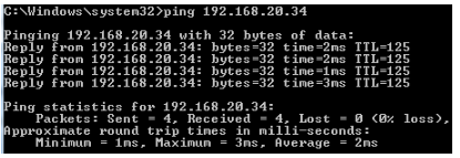 PC at HQ Office: Windows 7 > cmd > ping 192.168.20.34
