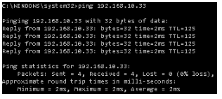 PC at Branch Office: Windows 10 > cmd > ping 192.168.10.33