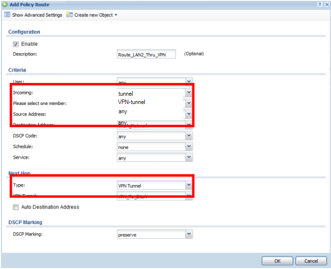 Please try to create a policy route for routing the traffic through the VPN