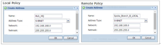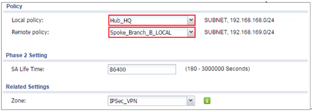 Set Local Policy to be Hub_HQ and Remote Policy to Branch_B which are newly created. Click OK.