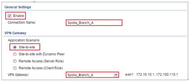 Spoke_Branch_A > CONFIGURATION > VPN > IPSec VPN > VPN Connection