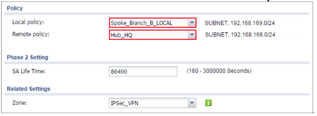 Set Local Policy to be Spoke_Branch_B_LOCAL and Remote Policy to Hub_HQ which are newly created. Click OK.