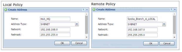 Set Local Policy to be Hub_HQ and Remote Policy to Branch_A which are newly created. Click OK.