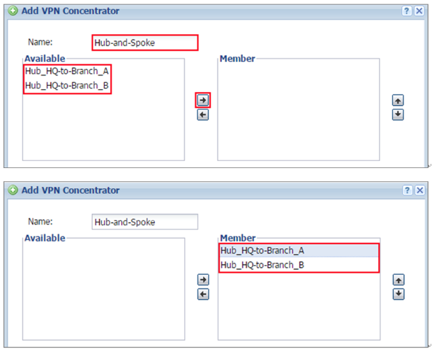 1 In the ZyWALL/USG, go to CONFIGURATION > VPN > IPSec VPN > Concentrator, add a VPN Concentrator rule. Select VPN tunnels to the same member group and click Save.