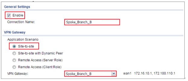 Spoke_Branch_B > CONFIGURATION > VPN > IPSec VPN > VPN Connection