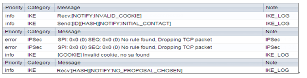 1 If you see [info] or [error] log message such as below, please check ZyWALL/USG Phase 1 Settings. All ZyWALL/USG units must use the same Pre-Shared Key, Encryption, Authentication method, DH key group and ID Type to establish the IKE SA.