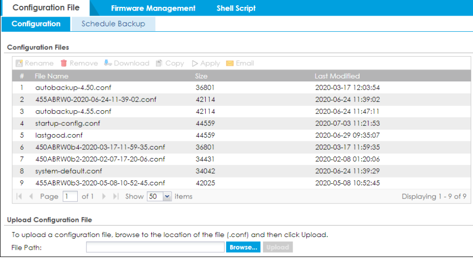 Under Filter, you might filter the logs on "File Manager" to see all the records related to the configuration upload.