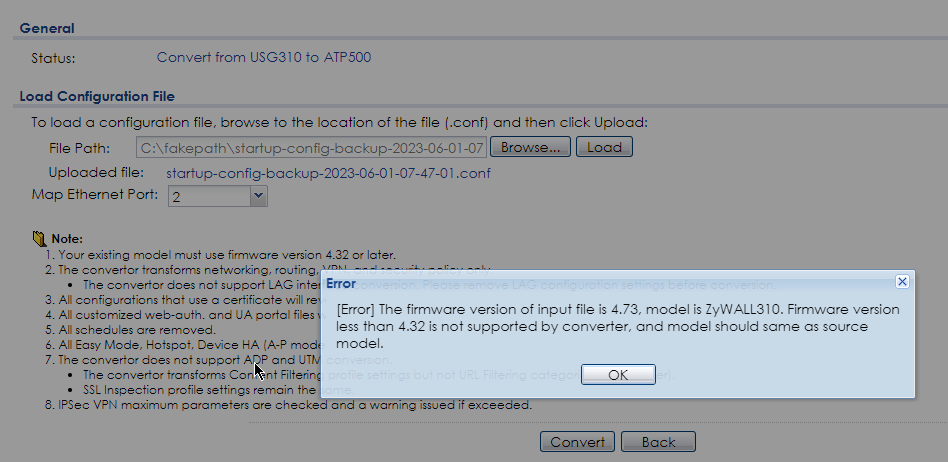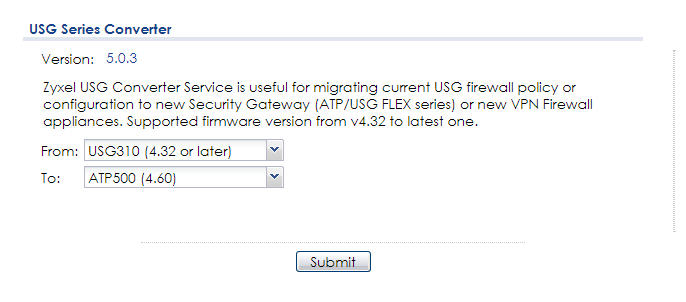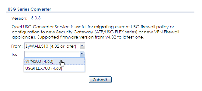 If you have a Zywall310 and wants to convert this file to a USG FLEX 500, you might convert your Zywall310 configuration file from a