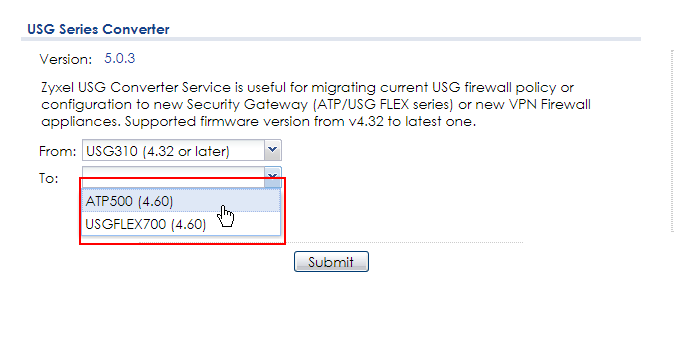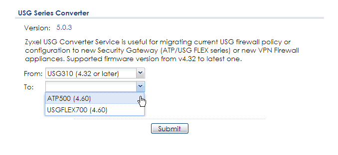 But you may also choose USG310 which gives you the option to convert your configuration file to a ATP500: