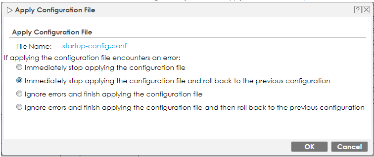 Choose to Immediately stop applying the configuration file and roll back to the previous configuration