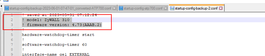 Then if you want to upload the new ATP500 configuration file to your new USG FLEX 500, you need to change a few things: