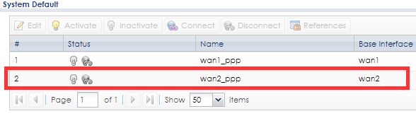 For the second connection, a system default connection can be used. But make sure that you use the connection which does not use the same base port as the VLAN. In this example, we used base port WAN1 for VLAN7. This means you now have to use WAN2: