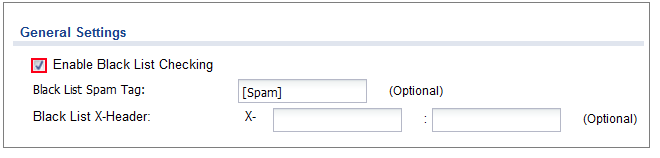 3. In the ZyWALL/USG, go to CONFIGURATION > UTM Profile > Anti-Spam> Black/White List > Black List > General Settings, select Enable Black List Checking to have the ZyWALL/USG treat e-mail that matches (an active) black list entry as spam.