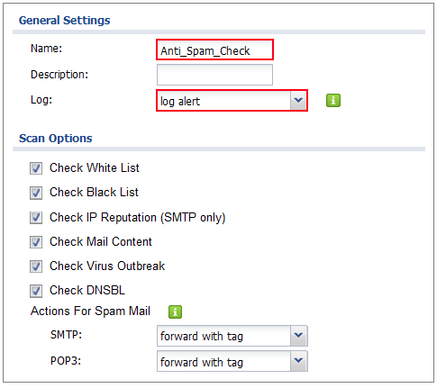 CONFIGURATION > UTM Profile > Anti-Virus > Anti-Spam> Mail Scan