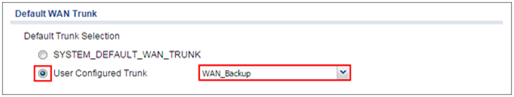 2. In the configuration screen, go to the default WAN Trunk section, select User Configured Trunk and select the newly created Trunk from the list box. Click Apply.