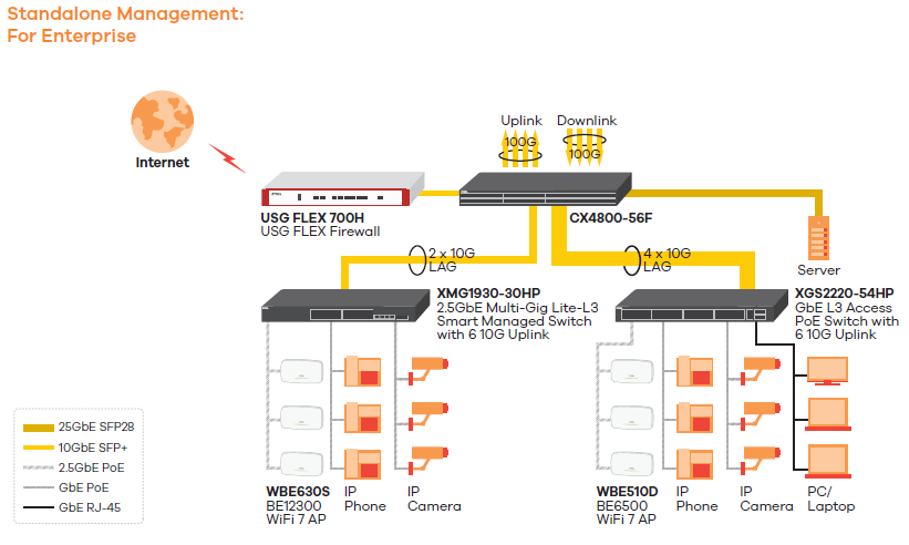 | Standalone | Web GUI, CLI, SNMP, SSH, Telnet |