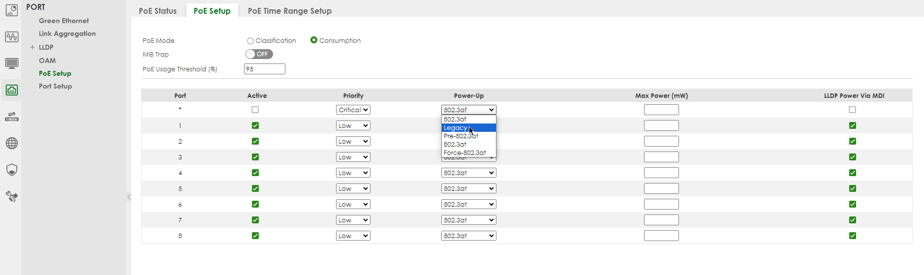 PORT > PoE Setup