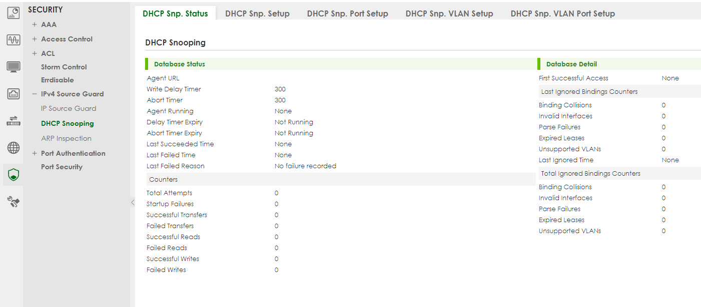 SECURITY > IPv4 Source Guard > DHCP Snooping > DHCP Snp. Status