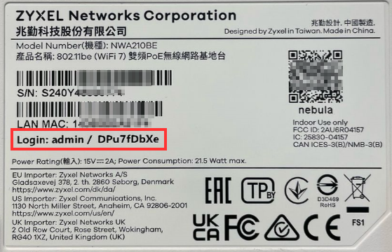 The username for logging into the local web interface is typically "admin", but the password is unique to each Zyxel NWA210BE access point. You can find it on the sticker located on the device itself. It's always a good practice to change the default password after the initial setup to enhance security. |