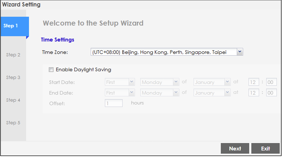 Once you have changed your login password, you will see the now familiar 5-step wizard please proceed forward and complete all the necessary settings: