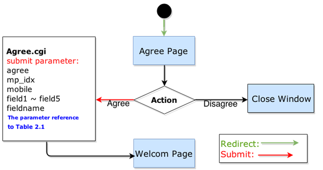 - In the Agree page, the parameters name “agree” and “mp_idx” must submit to agree.cgi on UAG.