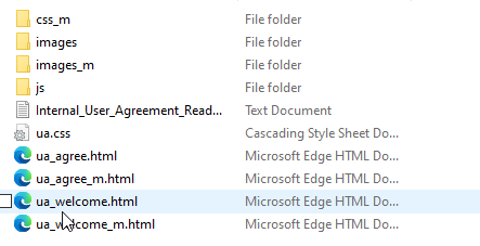By using the internal or external User Agreement portal, you can customize the User Agreement web page (UA Portal), which can be a replacement for the default user agreement that is originally built in UAG. Please download the example UA portal page files from UAG and then you can freely configure the appearance of your personal web portal page based on your preference.