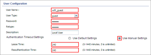 1. In the ZyWALL/USG, go to CONFIGURATION > Object > User/Group > User. Click Add to configure the User Name, the guest Wi-Fi user and set User Type to guest. Set a secured Password (4-31 characters) and enter it again for confirmation.