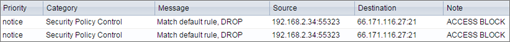 - Go to the ZyWALL/USG Monitor > Log, you will see [notice] log message shown as below. The access to FTP service port 21 is blocked in this example.