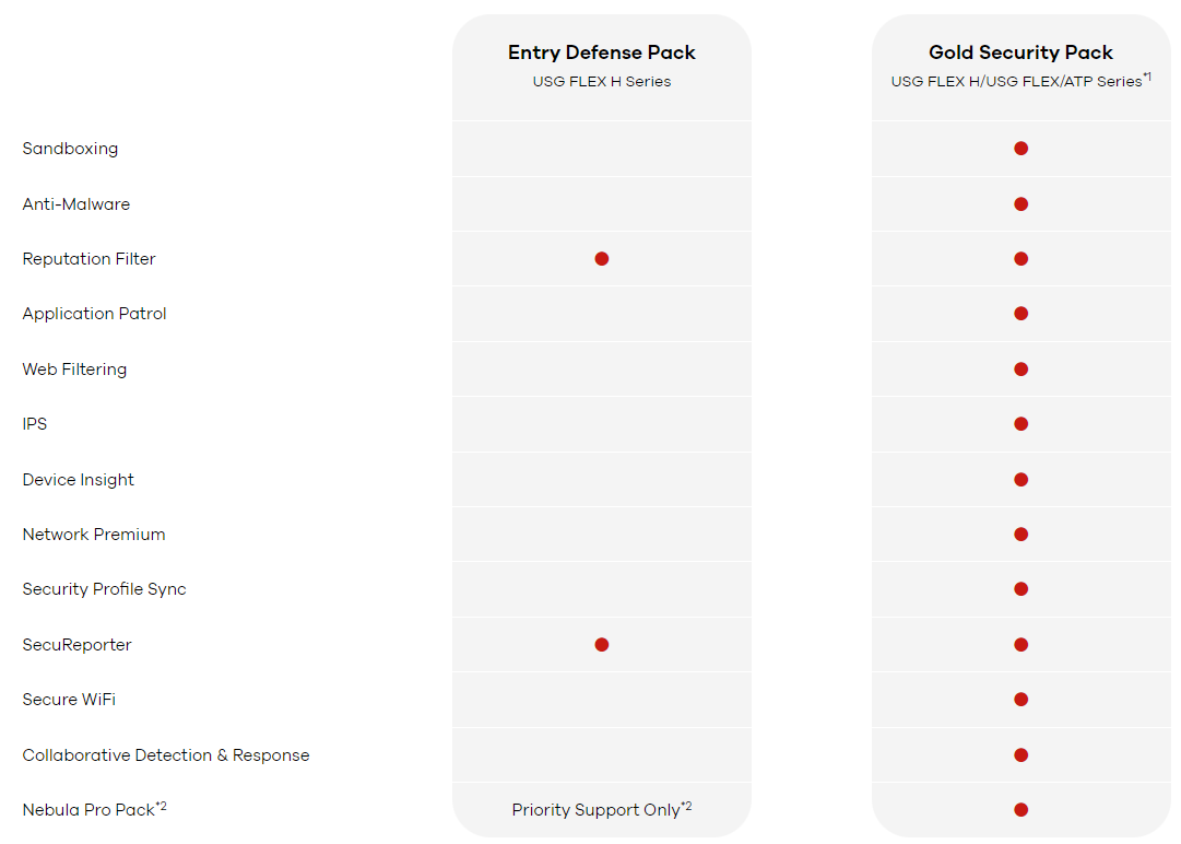 *2: Priority Support available to customers with a Pro Pack organization or those using the USG FLEX H series firewall