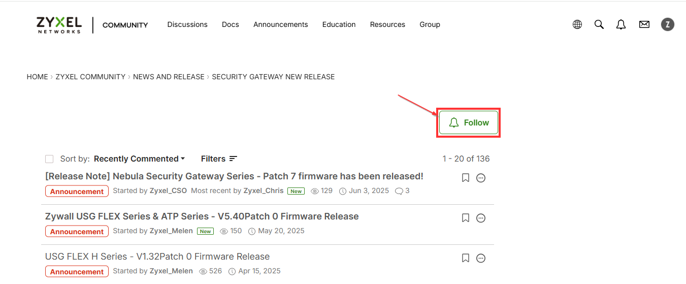 👉 https://community.zyxel.com/en/categories/news-and-release - Choose the Relevant Product Category