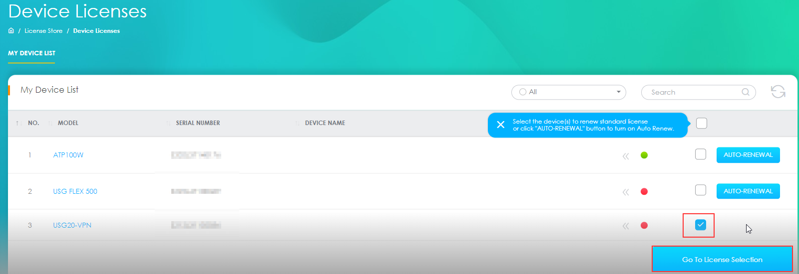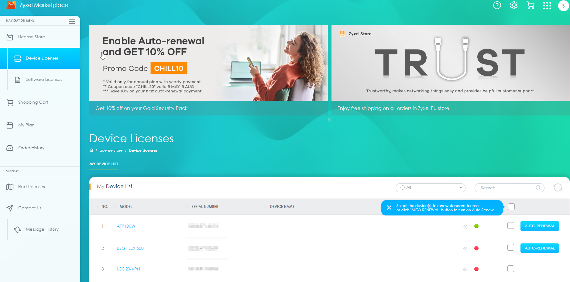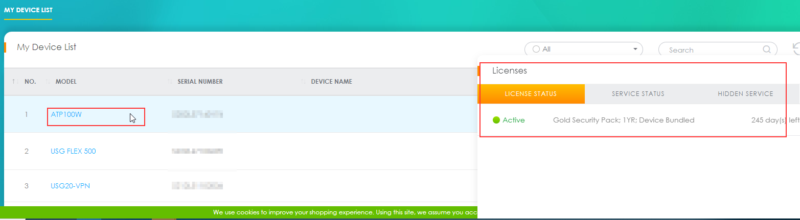 - After logging in, you will be greeted with your assets - your devices registered to your MyZyxel account