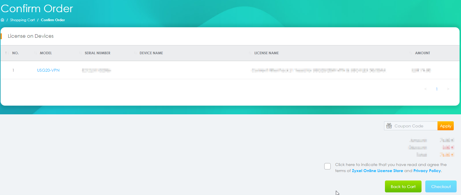 - Here you can choose which licenses you would like to buy (Currently, you can only buy Security licenses, but more for AP Controller, Hotspot, and Nebula are planned):