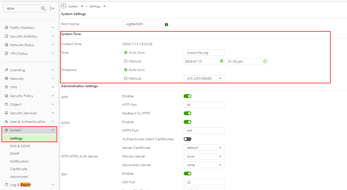 System > Settings > Date/TimeNote: If you are unable to use SecuReporter because your device keeps getting an error like this: