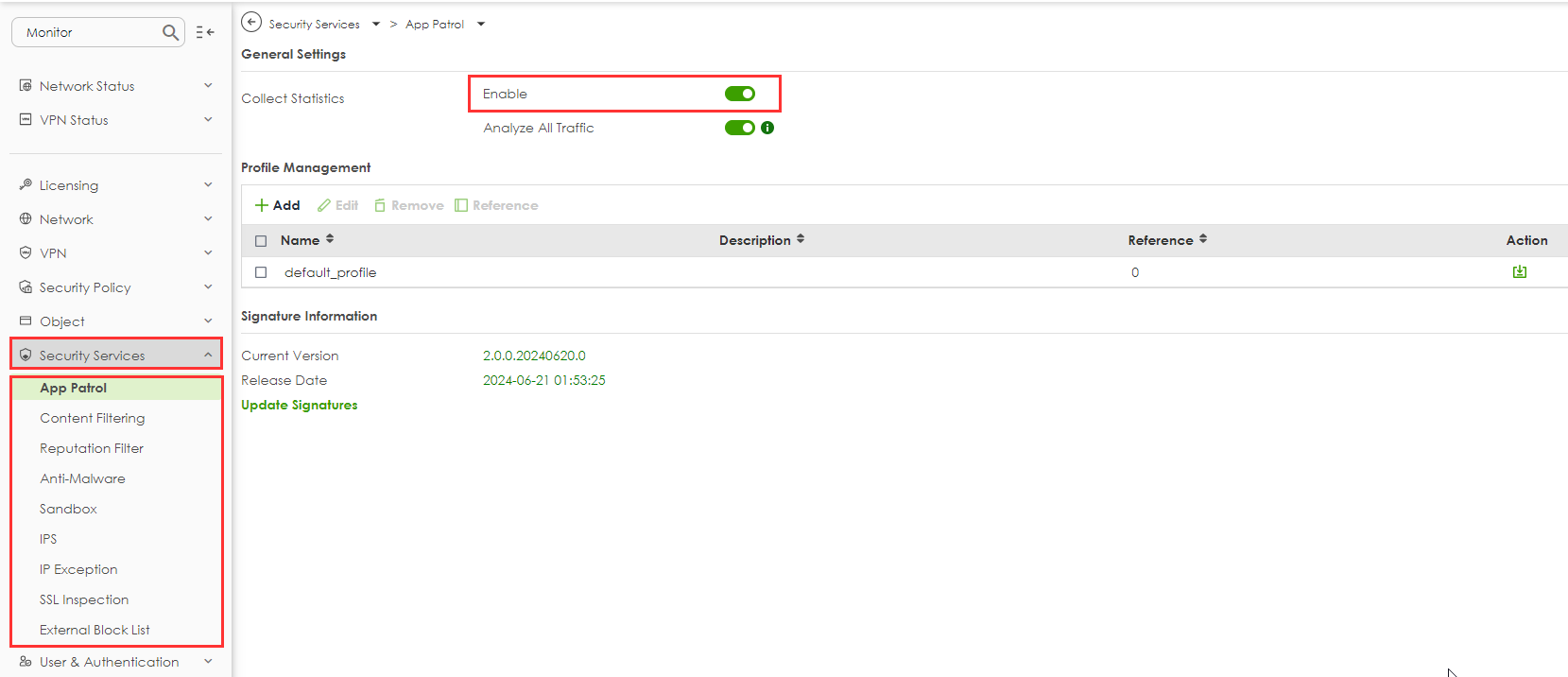 Note: Device Insight in the gateway configuration must be enabled, otherwise, SecuReporter will not show information related to MAC addresses. Enable this feature to collect the status and basic information of the clients connected to the Zyxel Device. USG FLEX H Series [Firewall] - Device Insight
